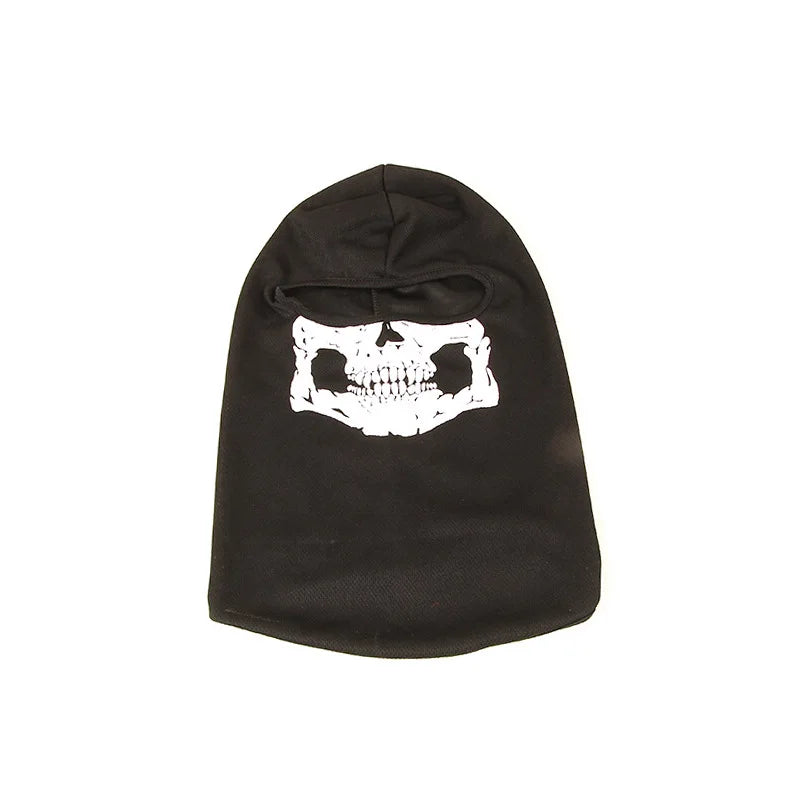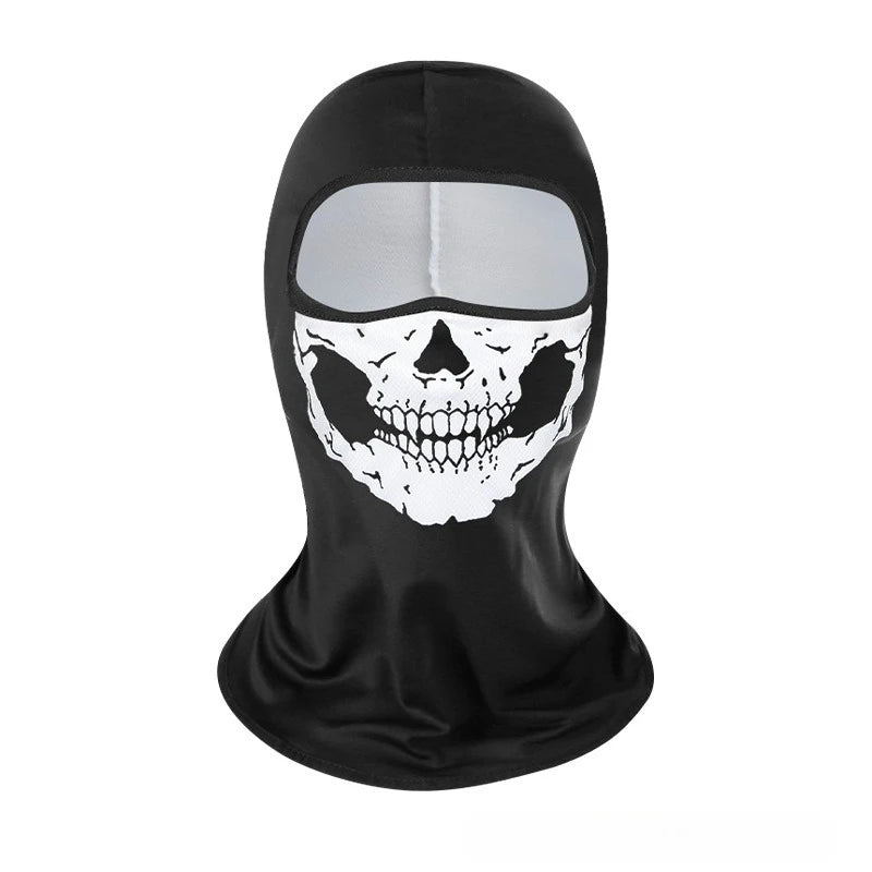 The VOODIEX Halloween Skull Print Balaclava offers full-face protection with a striking ghost skull design, ideal for bike riders and outdoor enthusiasts. Crafted to shield your face from wind, dust, and cold, it provides comfort and durability during your activities. Its breathable fabric ensures easy airflow while maintaining coverage, making it a practical choice for both safety and style this Halloween season.
