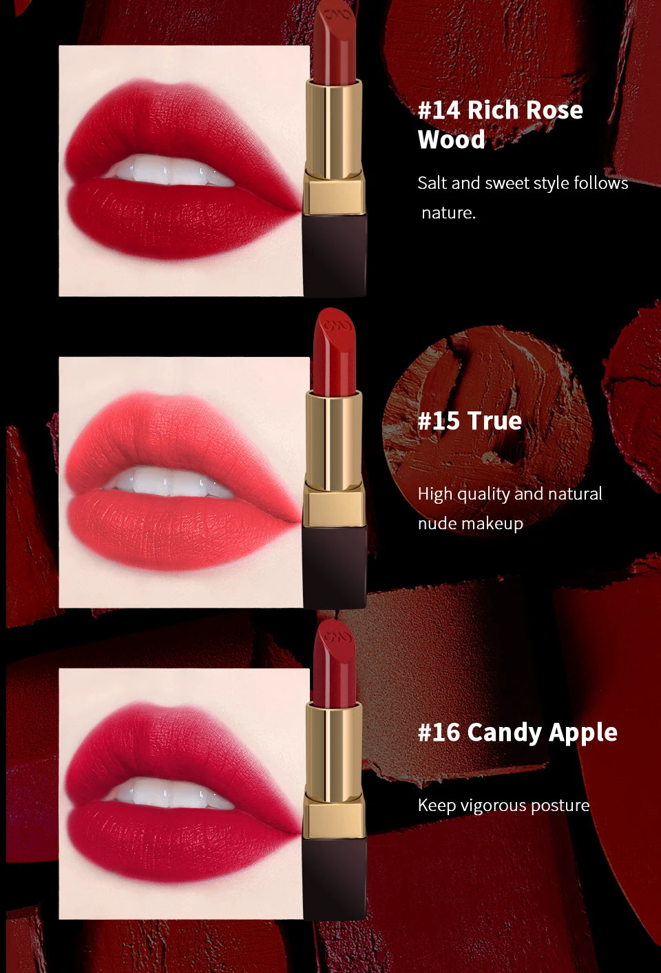 CHARMACY Moisturizing Luxury Lipstick Velvet High Quality Lipsticks Shiny