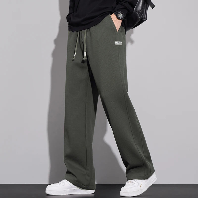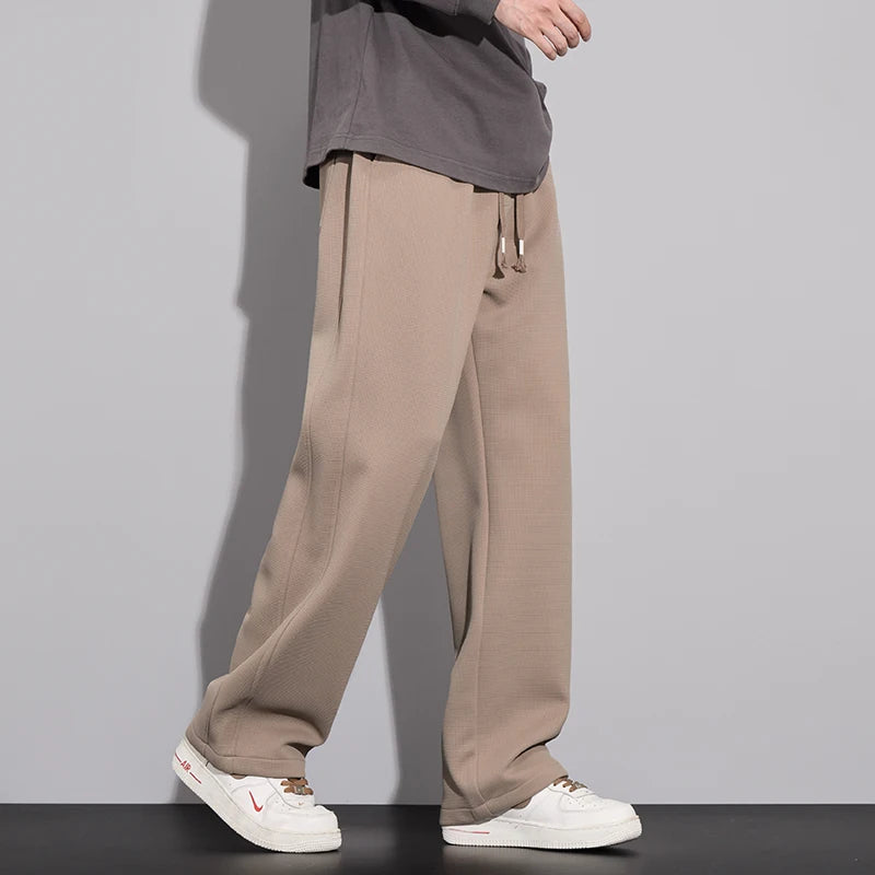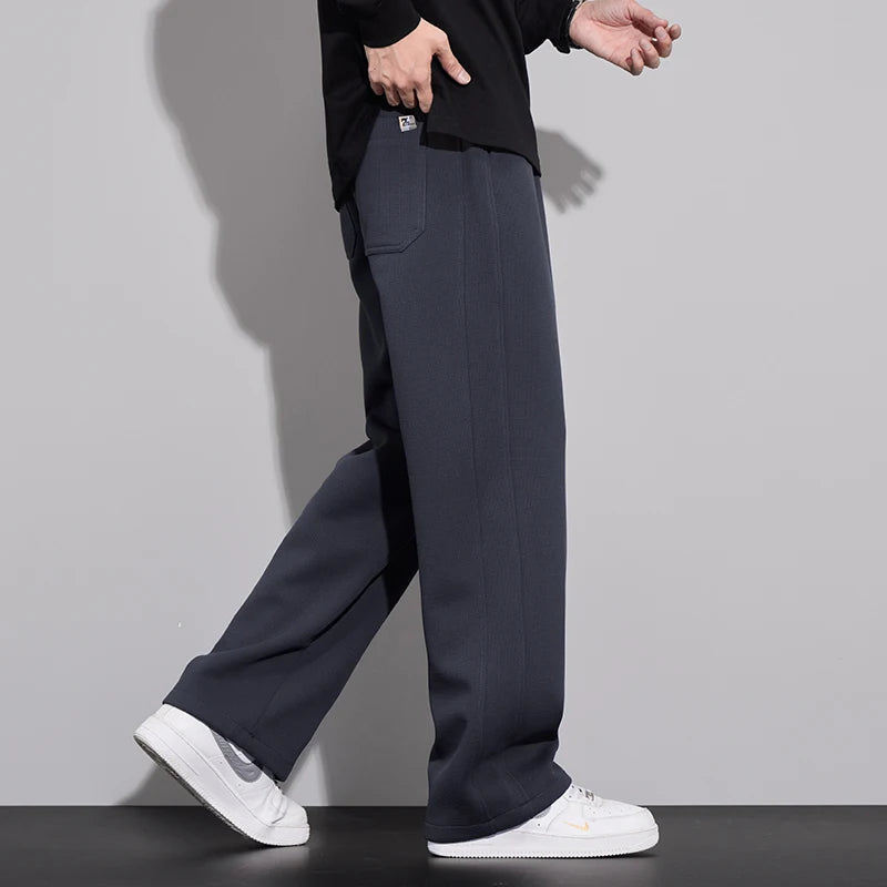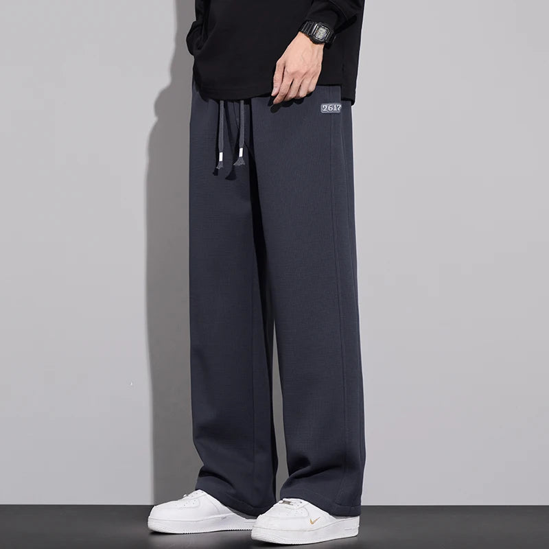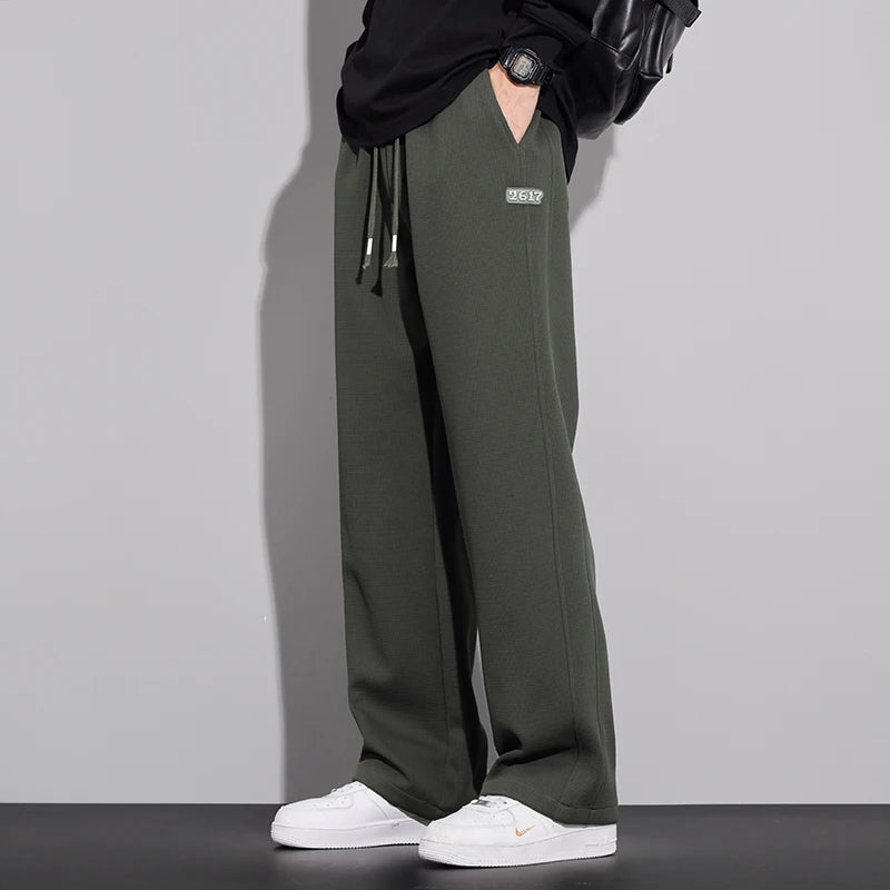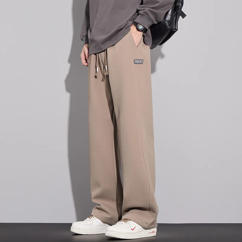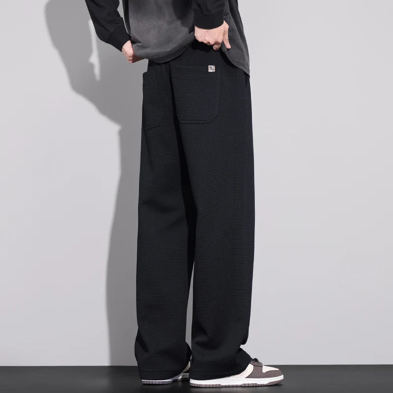 VOODIEX Autumn Men's Wide-leg Casual Pants Waffle Fabric Soft Comfortable