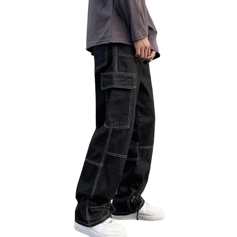 These men's cargo jeans combine wide-leg comfort with durable denim construction, offering a relaxed fit ideal for casual and streetwear styles. Designed with a straight, baggy silhouette, they provide ease of movement—perfect for hip-hop enthusiasts and skateboarders alike. Featuring multiple pockets for practical storage, these neutral-toned trousers blend functionality with urban fashion, making them a versatile addition to any wardrobe focused on both style and utility.
