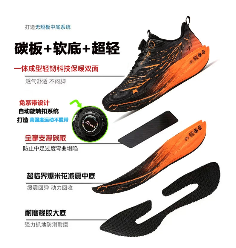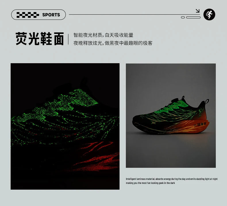 VOODIEX Fluorescence Running Shoes Carbon Board Marathon Men Sports Casual