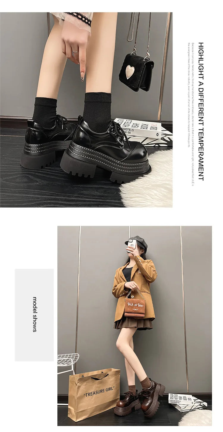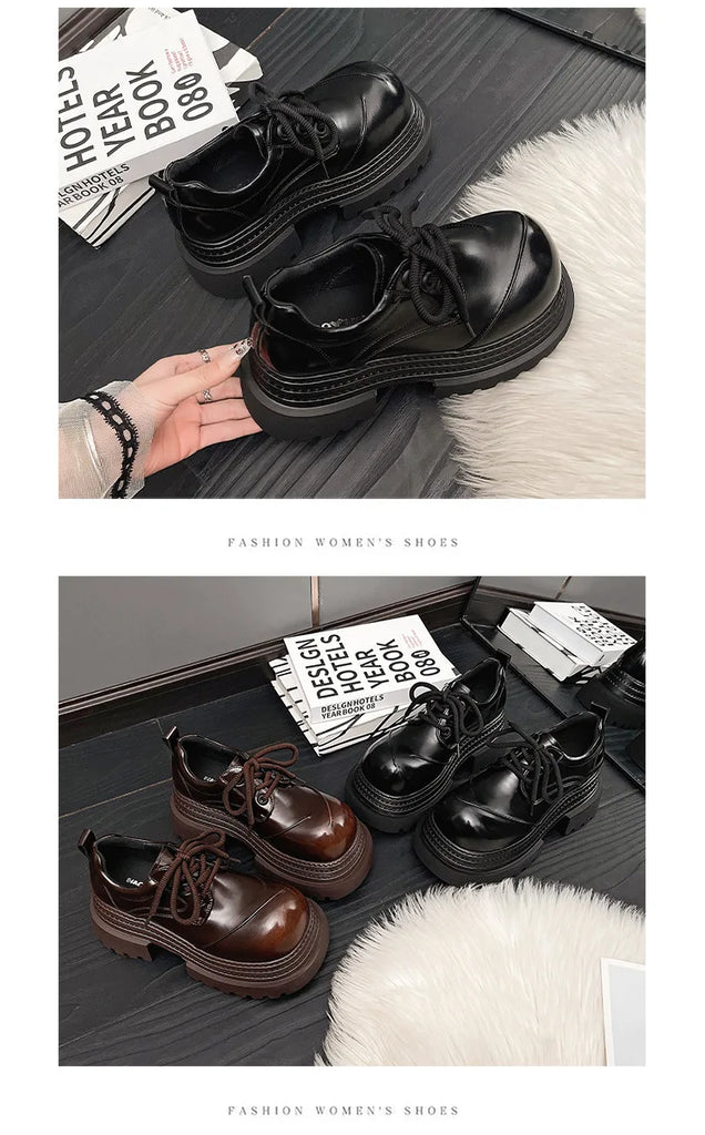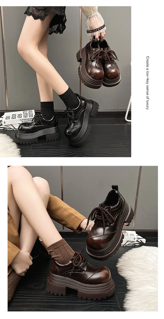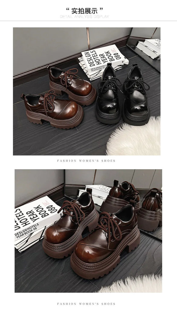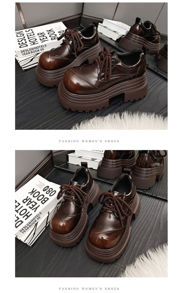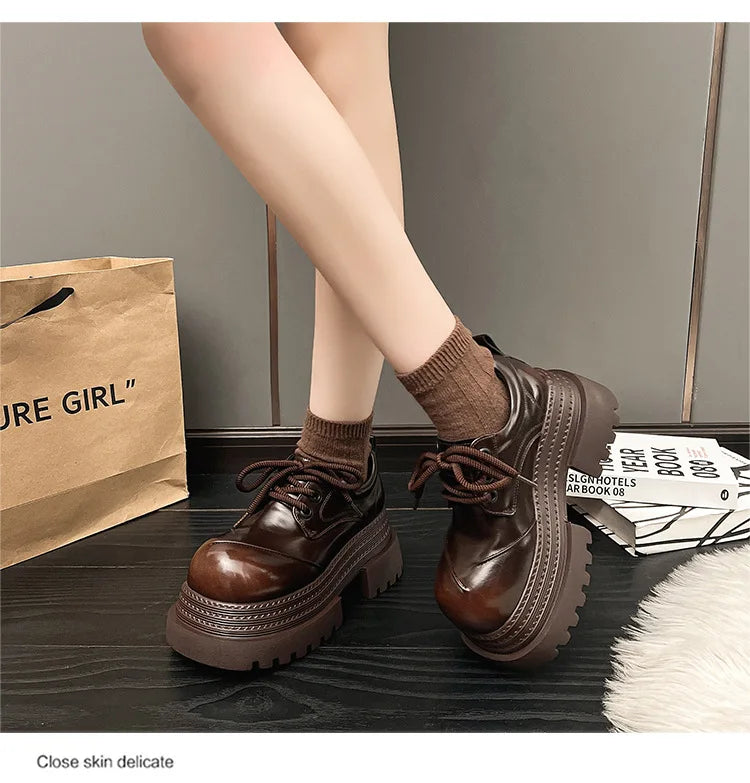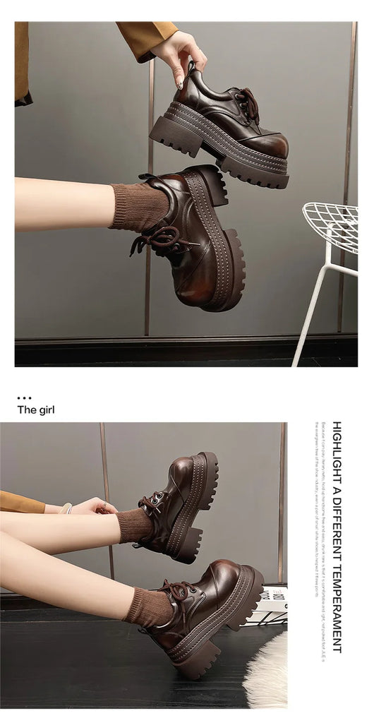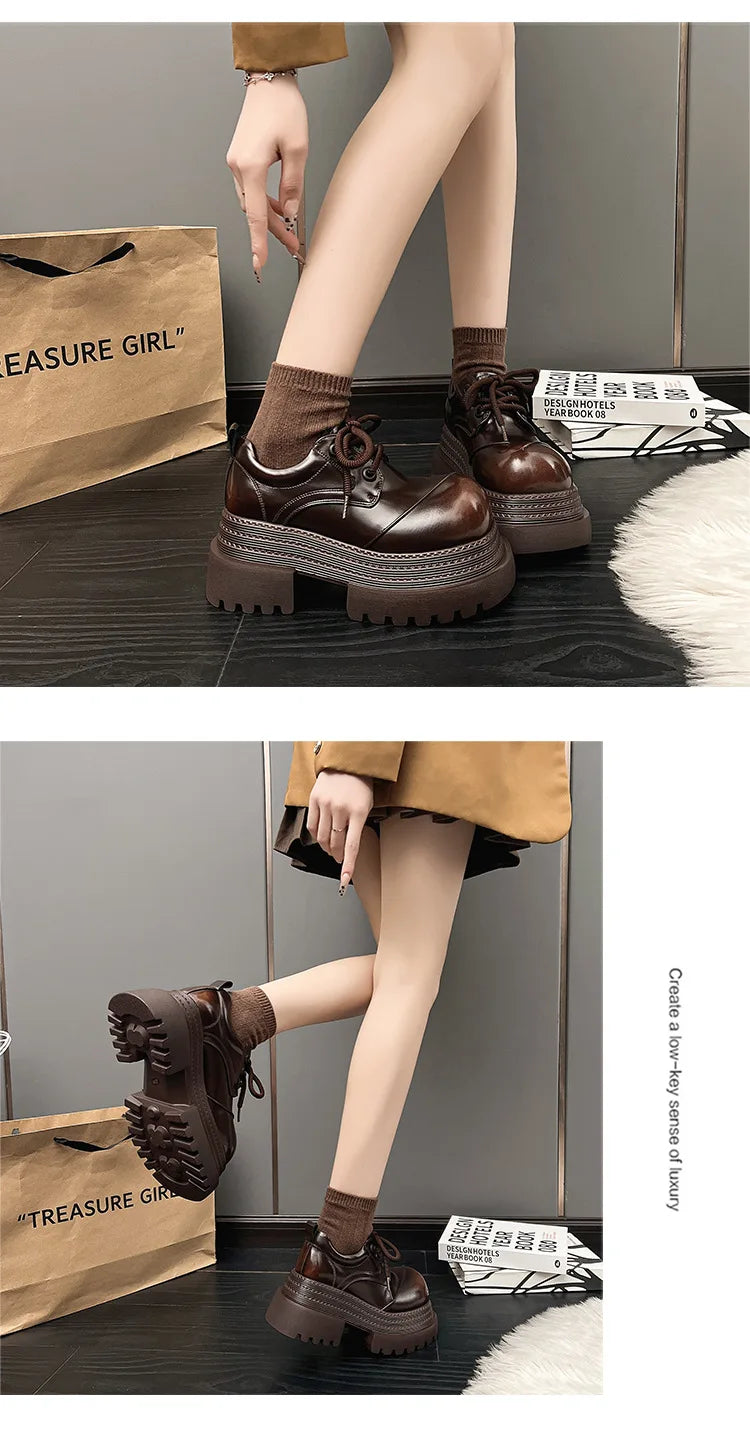 VOODIEX-Women Retro Loafers Luxury Brand Increase Thick Sole Leather
