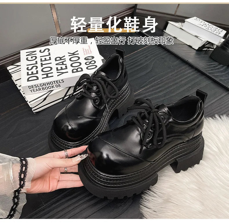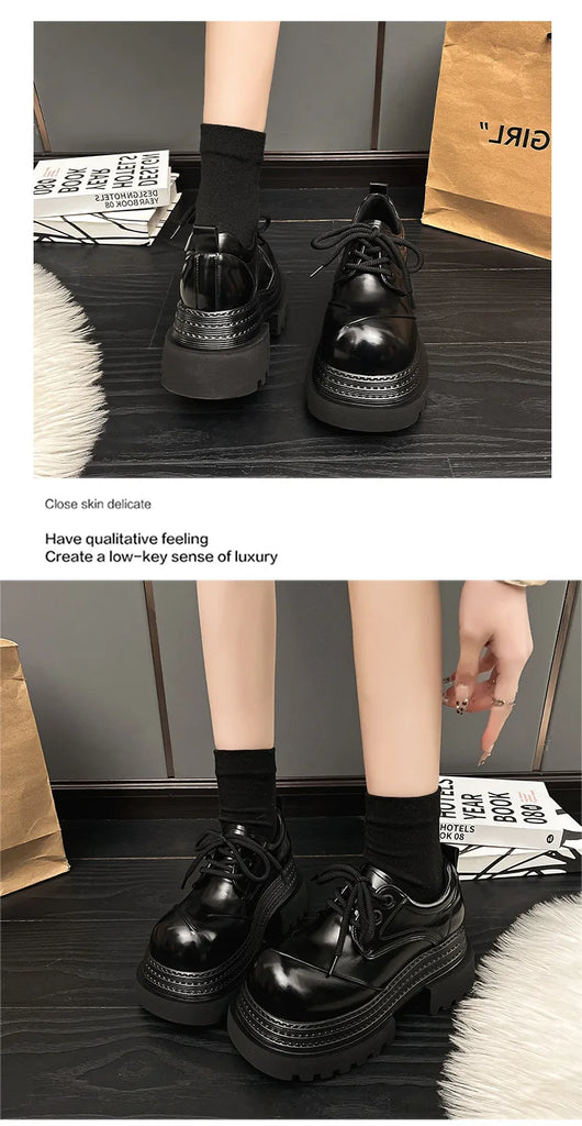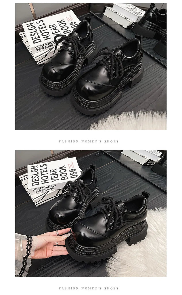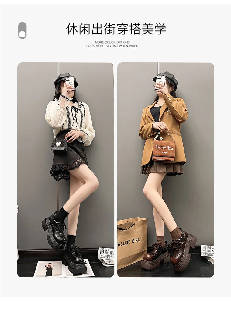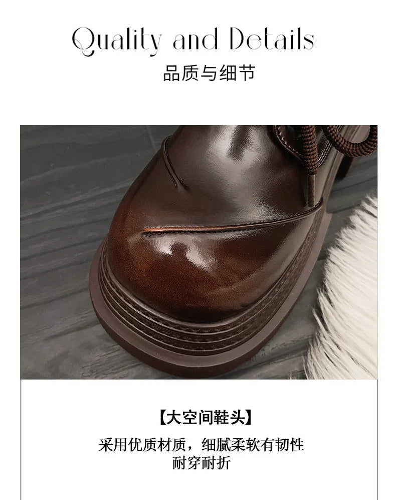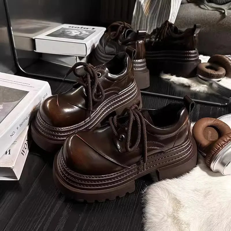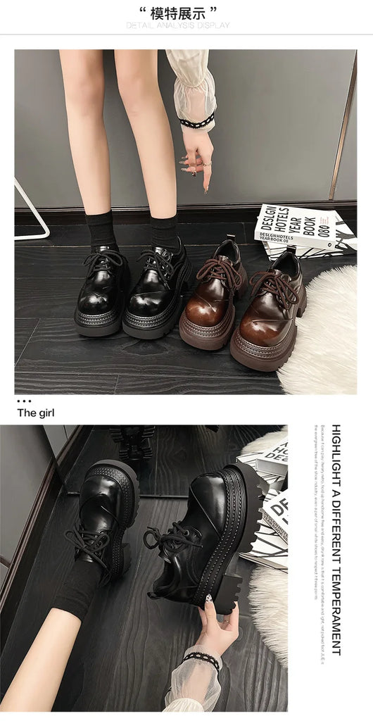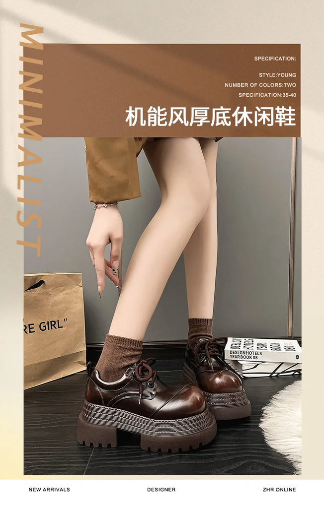 VOODIEX-Women Retro Loafers Luxury Brand Increase Thick Sole Leather