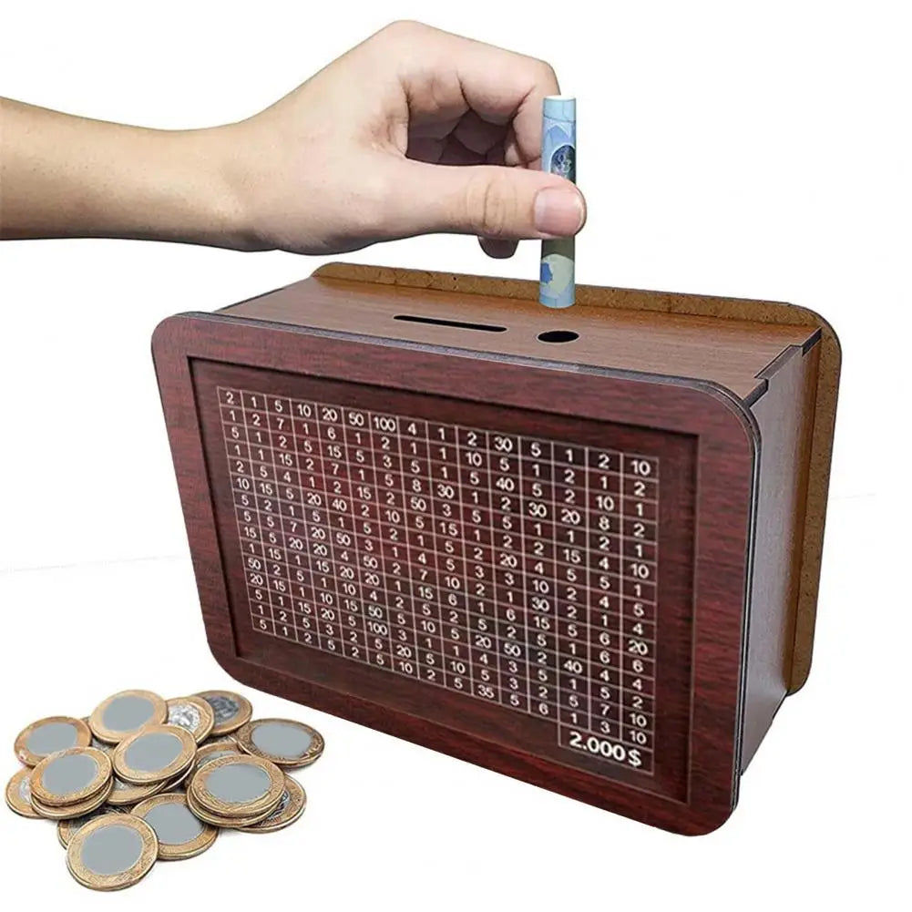 Money Box Wooden Piggy Bank with Reusable Money Box with Saving Goal