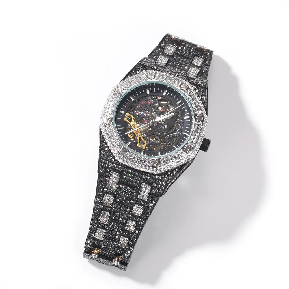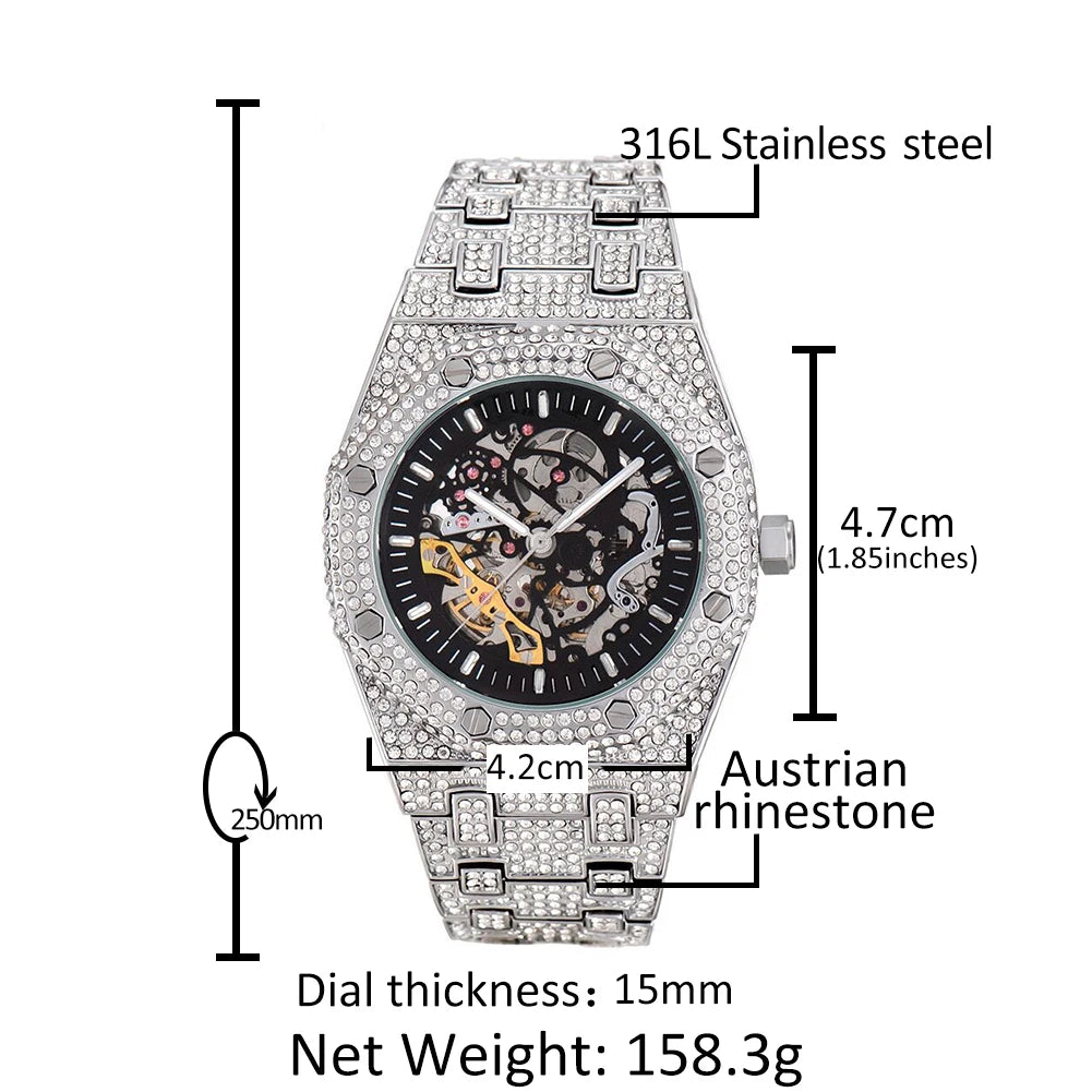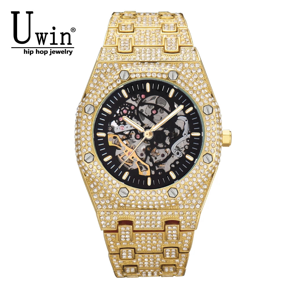 Uwin Stainless Steel Mechanical Watch Waterproof Full Iced Out Minimalist Diamond