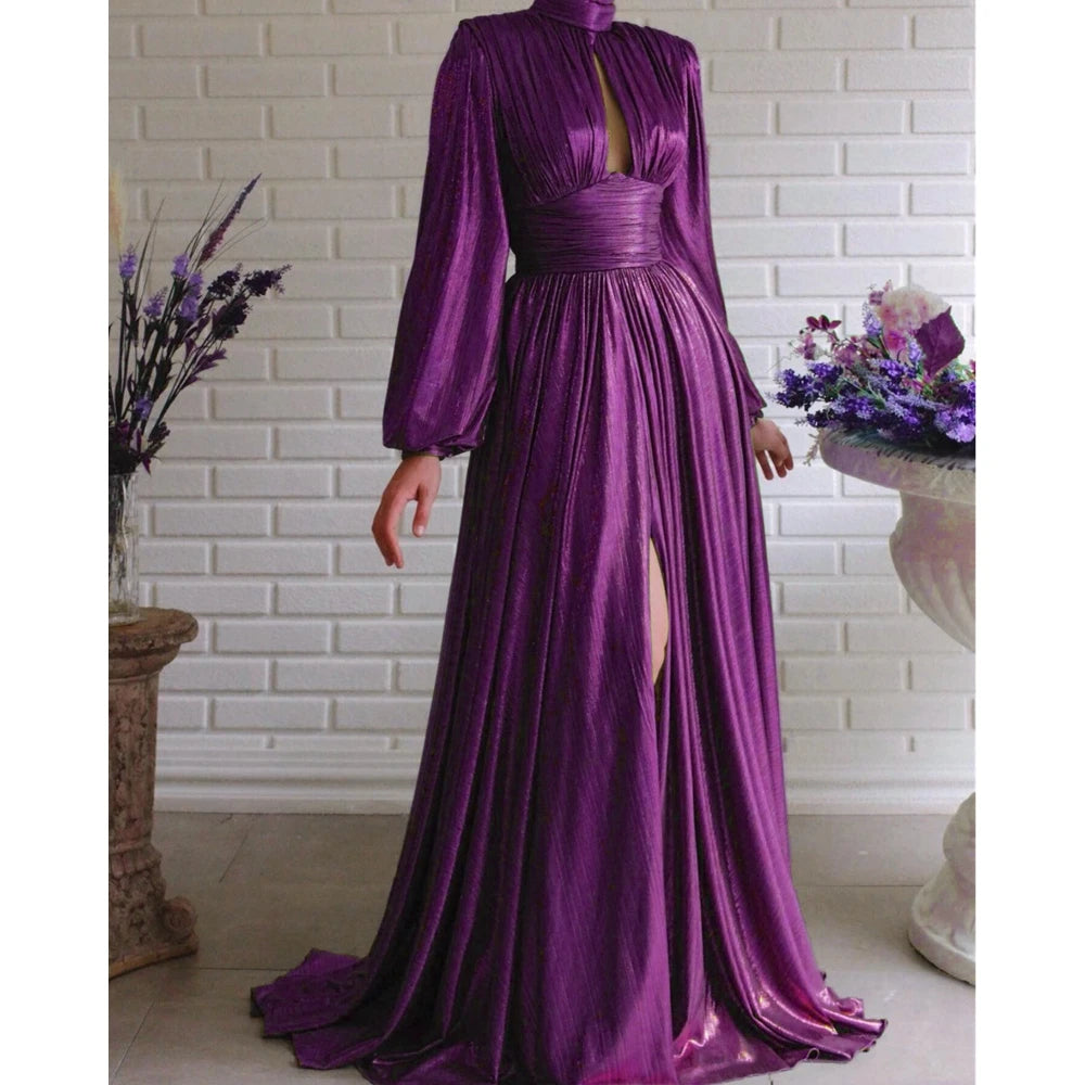 # VOODIEX Women Slit Long Sleeve Maxi Party Dress Sexy Evening Dress Command attention in this striking maxi party dress, expertly designed with a bold slit and long sleeves for sophisticated allure. The extended length provides elegance while the strategic slit adds contemporary edge and movement. Long sleeves offer refined coverage without compromising the dress's captivating silhouette. Perfect for evening galas, upscale celebrations, or formal events, this piece balances sensuality with polished restraint. The streamlined design flatters the figure while the dramatic slit ensures you make a memorable impression with understated confidence and modern glamour.