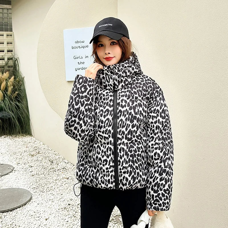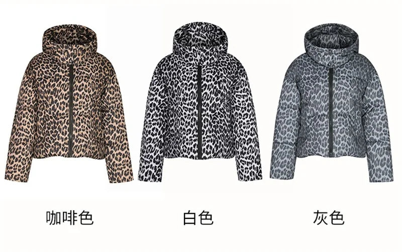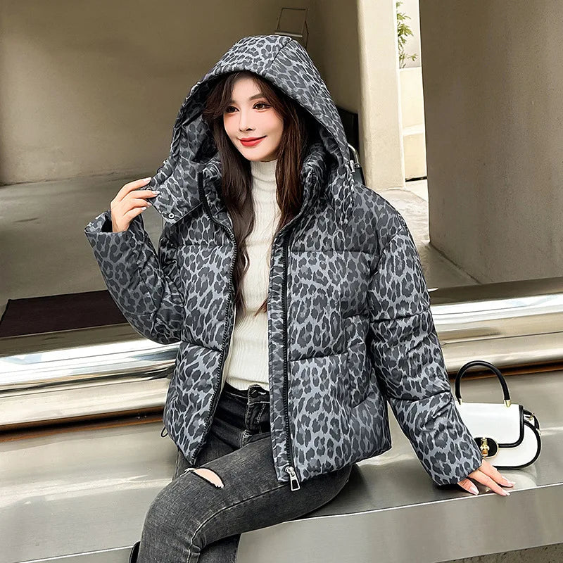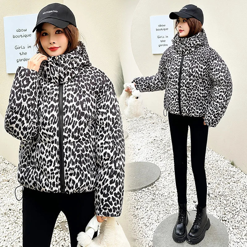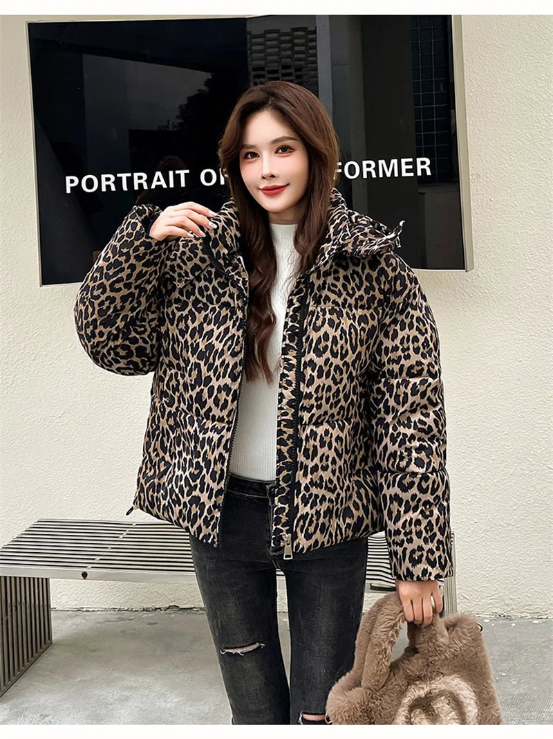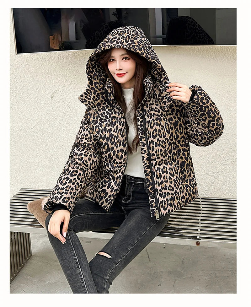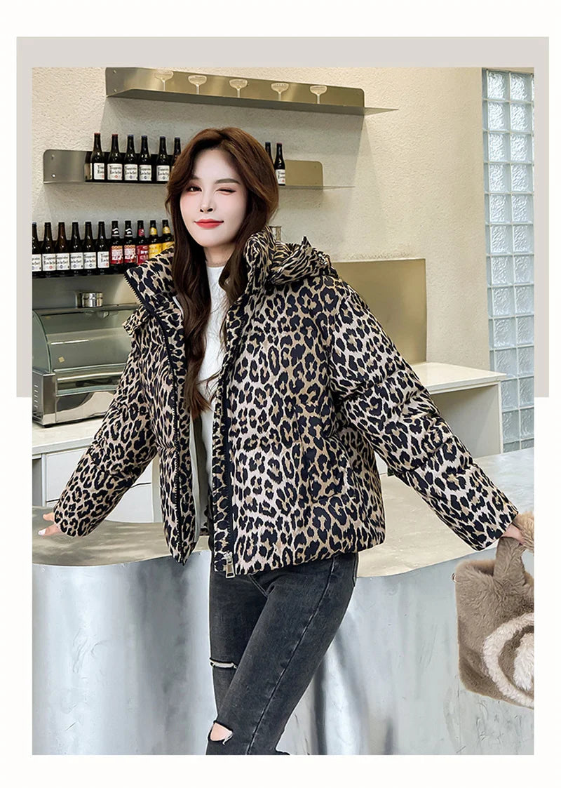 Jacket Women Parkas Hooded Leopard Warm Winter Casual Female Overcoat