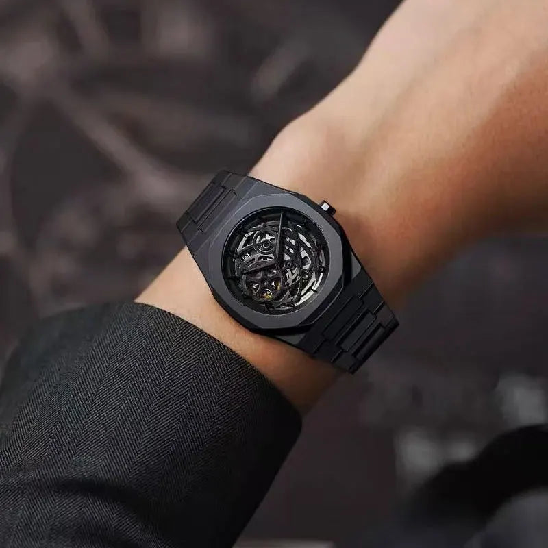 Experience precision and style with the 2025 Hollow Dial Design Black Classic Quartz Watch. Its unique open dial showcases intricate craftsmanship while maintaining a timeless black finish ideal for any occasion. Featuring reliable quartz movement, this watch ensures accurate timekeeping. Customize the logo to reflect your brand or personal touch, making it a sophisticated accessory or a distinctive corporate gift. Perfectly blending modern design with classic elements, this timepiece offers both elegance and functionality for discerning wearers.