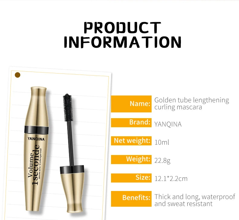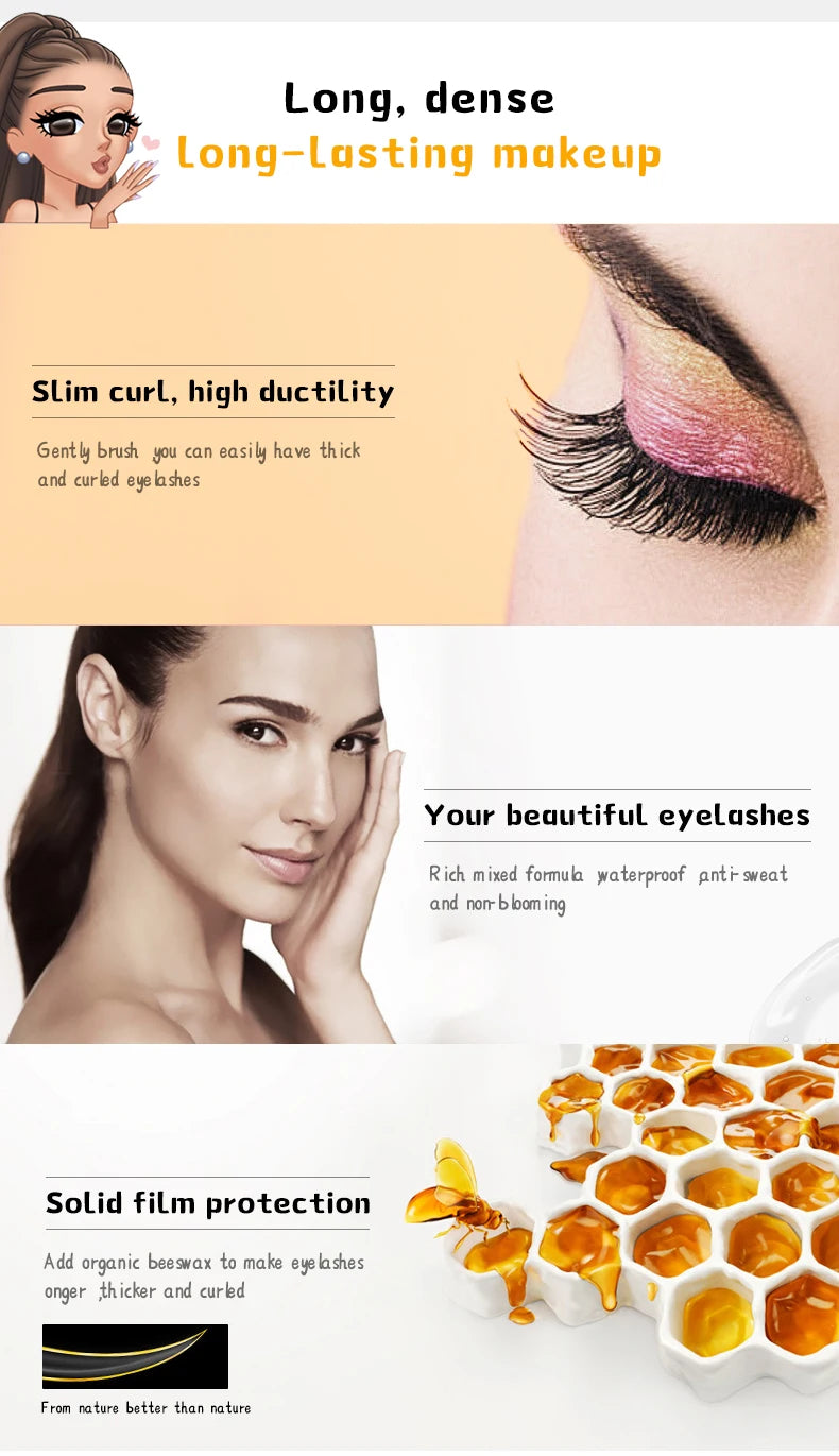 Waterproof Curling Mascara Liquid Fiber Black Eyelashes Brush Long Lasting Natural Eye Makeup