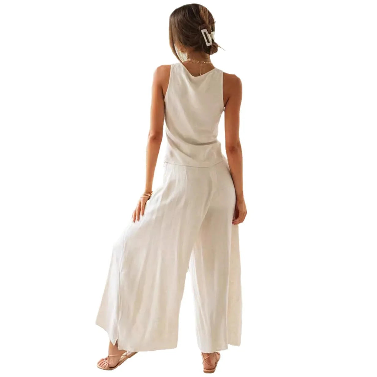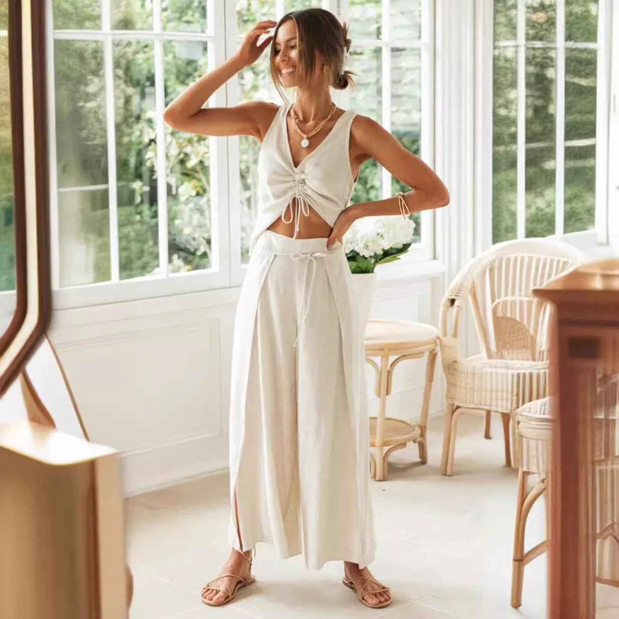 Casual 2 Piece Set For Women Top And Solid Pants Set Ropa