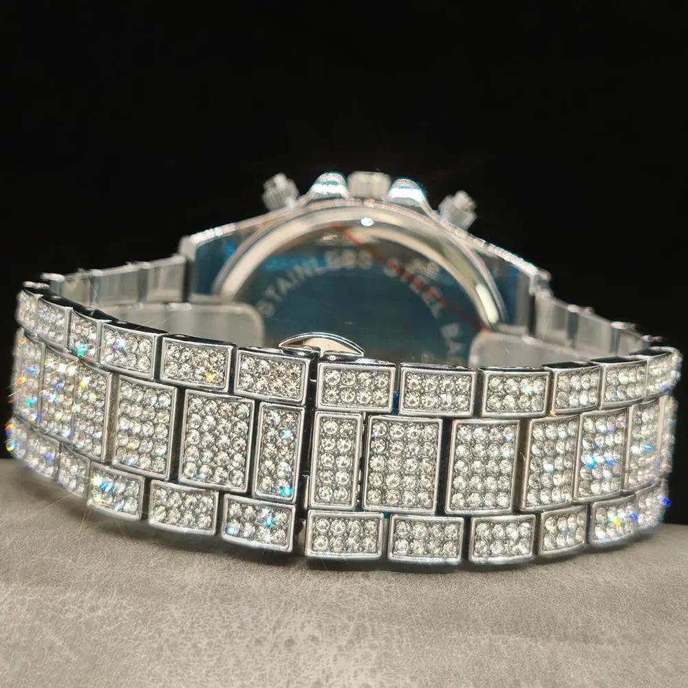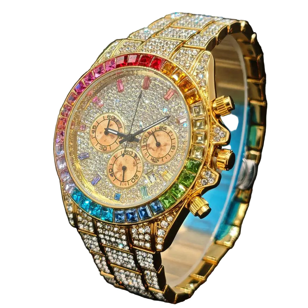 Gold Watch For Men Brand UNIGUET Hip Hop Rainbow Diamond shiny Jewelry
