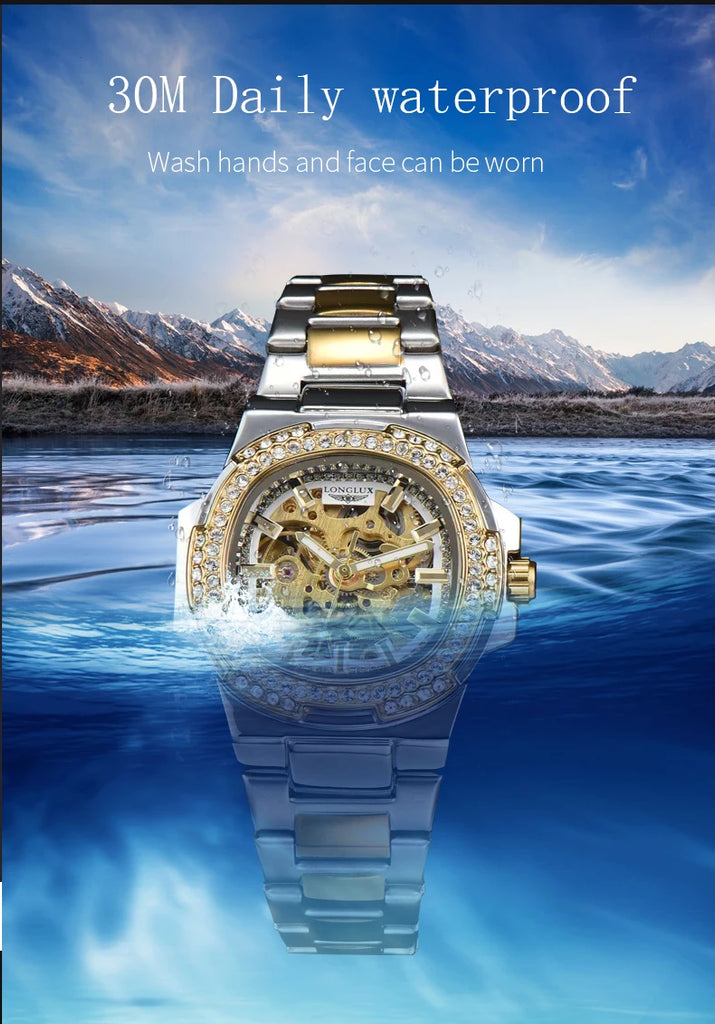 LONGLUX automatic man watch luxury stainless steel mechanical