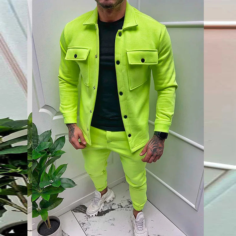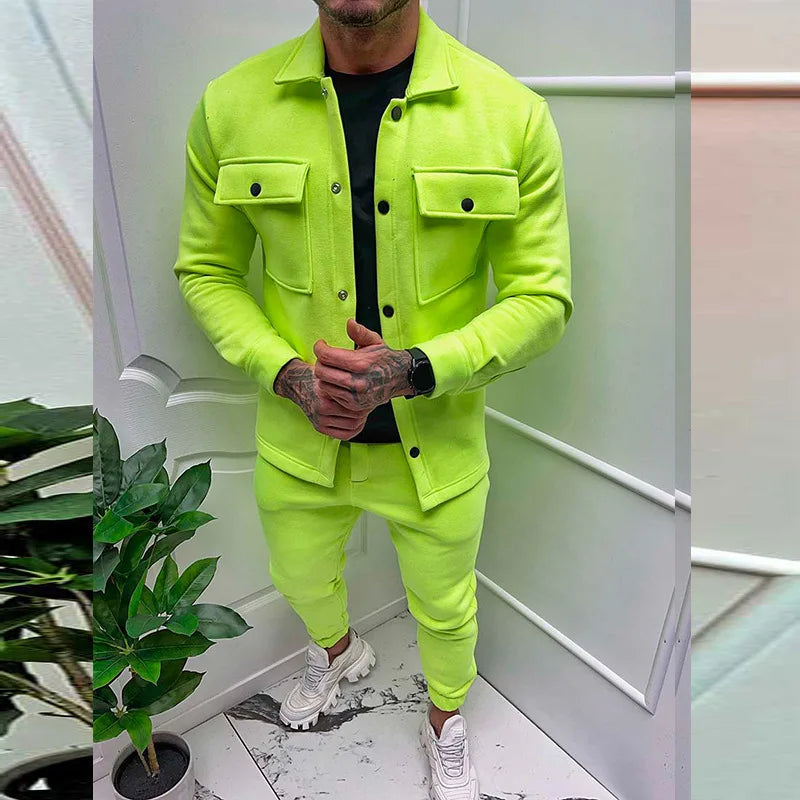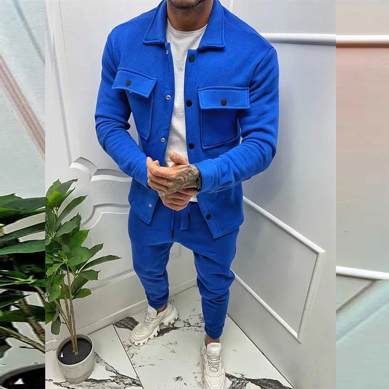 Men Set Autumn Fashion Jacket and Pants Two Piece Set Men's Suits