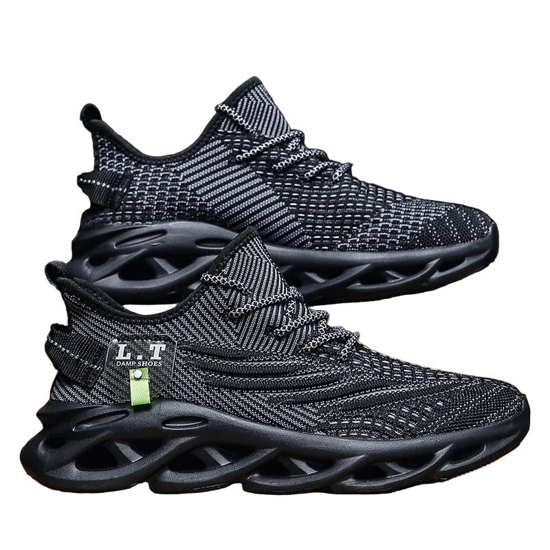 These YRZL men’s and women’s sports running shoes combine lightweight, breathable mesh with advanced shock-absorption technology, ensuring comfortable outdoor performance. Their versatile black design suits both jogging and casual wear, while the durable sole provides reliable traction. Ideal for athletes and active lifestyles, these sneakers offer lasting support and breathability for enhanced foot stability during movement.