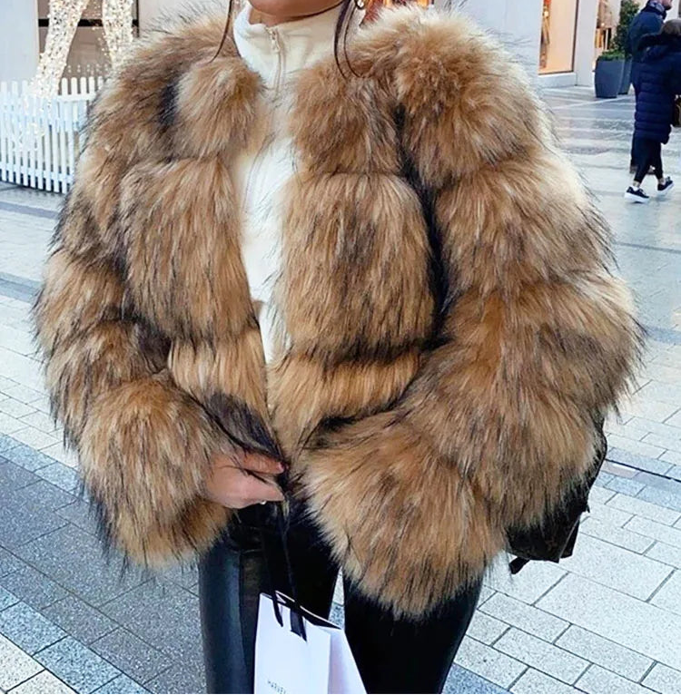 ZADORIN Woman Fashion Faux Raccoon Fur Coat Luxury Short Warm